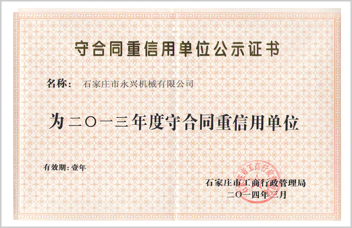 守合同重信用單位證書(shū)